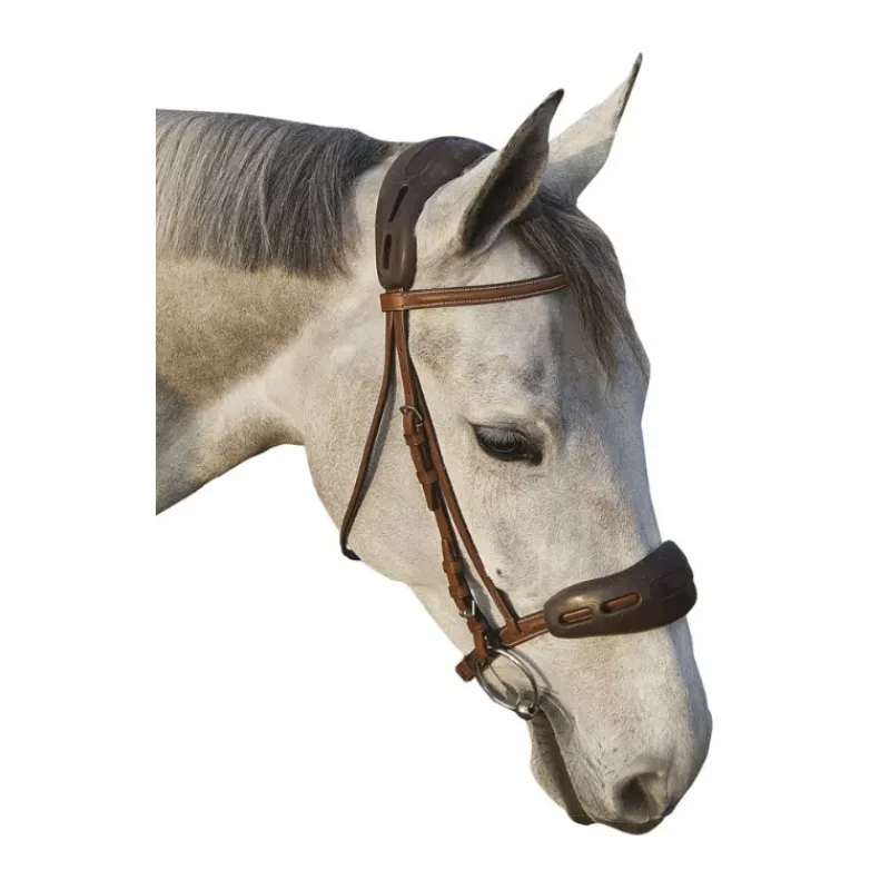 Cette protection de têtière ou muserolle en gel C.S.O. répartit de façon homogène la pression sur les cervicales et/ou le chanfrein de votre cheval.