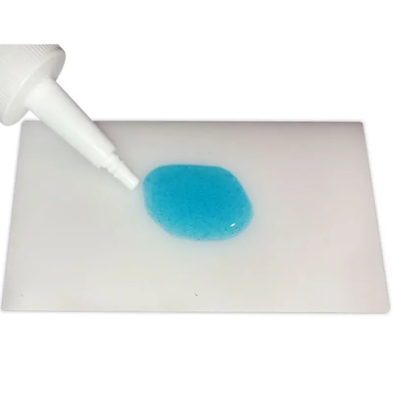 Après nettoyage du sabot du cheval, appliquer le gel en enfonçant la canule dans les lacunes de la fourchette pourrie et laisser à l’air libre.