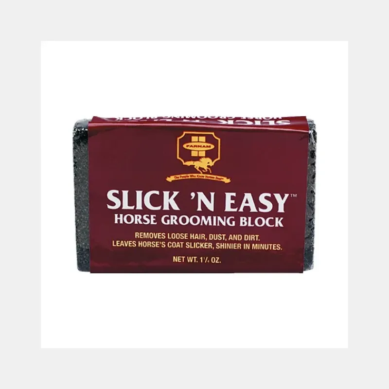 Slick’n Easy de Farnam est une gomme anti tache très efficace qui permet d’enlever les tâches jaunâtres et disgracieuses, difficiles à éliminer, de la robe des chevaux blancs, gris ou de couleur claire.