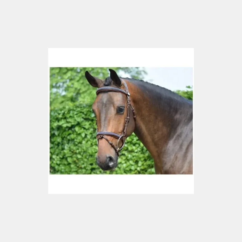 Le bridon Crystal est un véritable bijou de briderie avec ses insertions rondes ton sur ton en Crystal Fabric de Swarovski sur le frontal, la muserolle et la têtière. La têtière élargie est anatomique. La muserolle est uniquement disponible en combinée. C’est un bridon qui se prête à une utilisation en concours hippique, pour de belles occasions. La bouclerie est en inox et les rênes en caoutchouc bien souple.