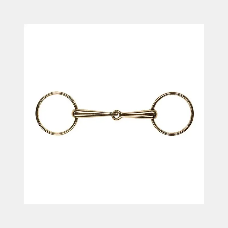 - Le mors à brisure simple en cyprium allie les avantages du cuivre et de l’inox : décontraction et solidité.