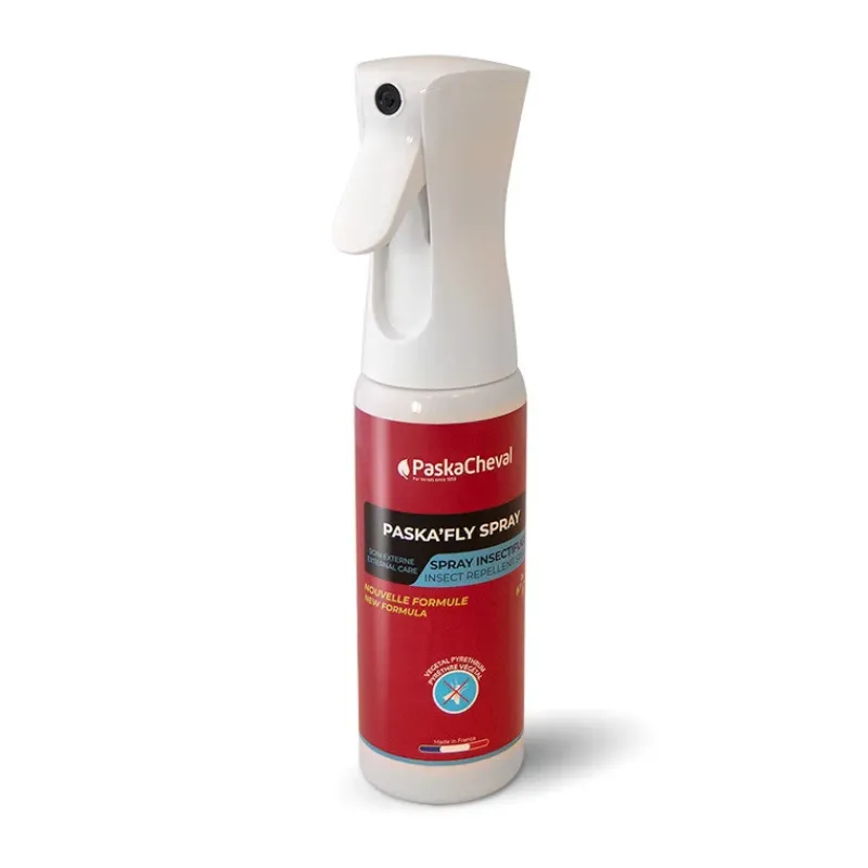 Pulvériser sur le cheval (poils et crins secs) en évitant les yeux et les muqueuses.