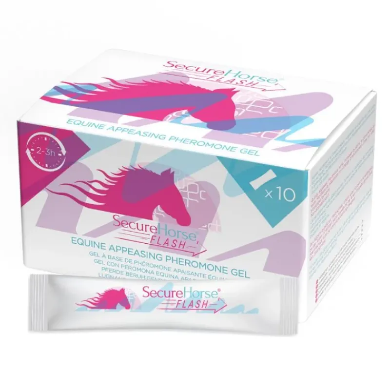 – SecureHorse Flash se présente sous forme de gel. Celui-ci doit être appliqué 20min avant l’événement stressant sur un cheval calme.