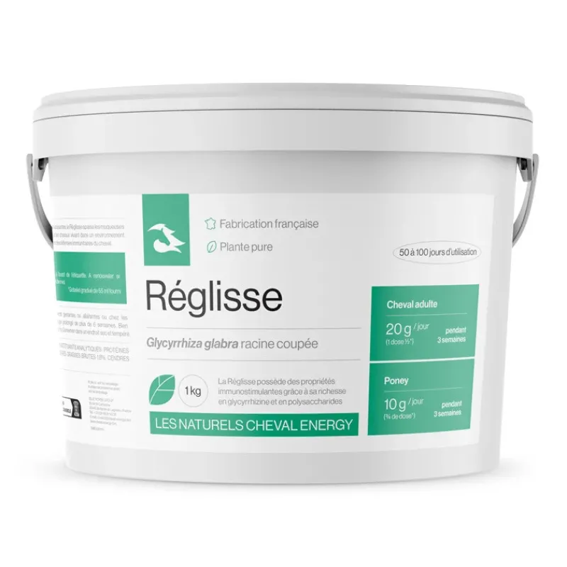 En tant que complément alimentaire pour les chevaux, la Réglisse peut être donnée sous forme de poudre, de racine coupée, d’extraits liquides ou de tisanes. Grâce à ses propriétés adoucissantes, elle peut aider à soulager les irritations et inflammations des muqueuses digestives et respiratoires chez les chevaux. De plus, ses effets bénéfiques sur le système immunitaire contribuent à renforcer les défenses naturelles de l’organisme équin.