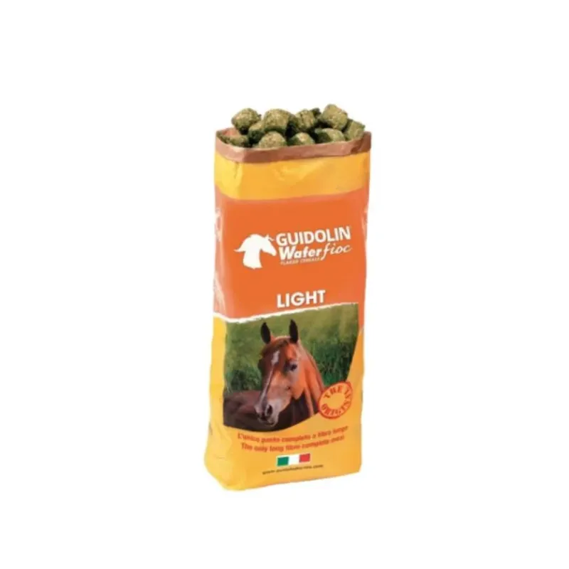 Découvrez le Guidolin Wafer Fioc Light de la marque Costalfa, le repas complet spécialement conçu pour les chevaux et poneys au travail léger. Ce produit révolutionnaire offre une solution pratique et efficace pour aider à combler les besoins nutritionnels de vos compagnons équins.