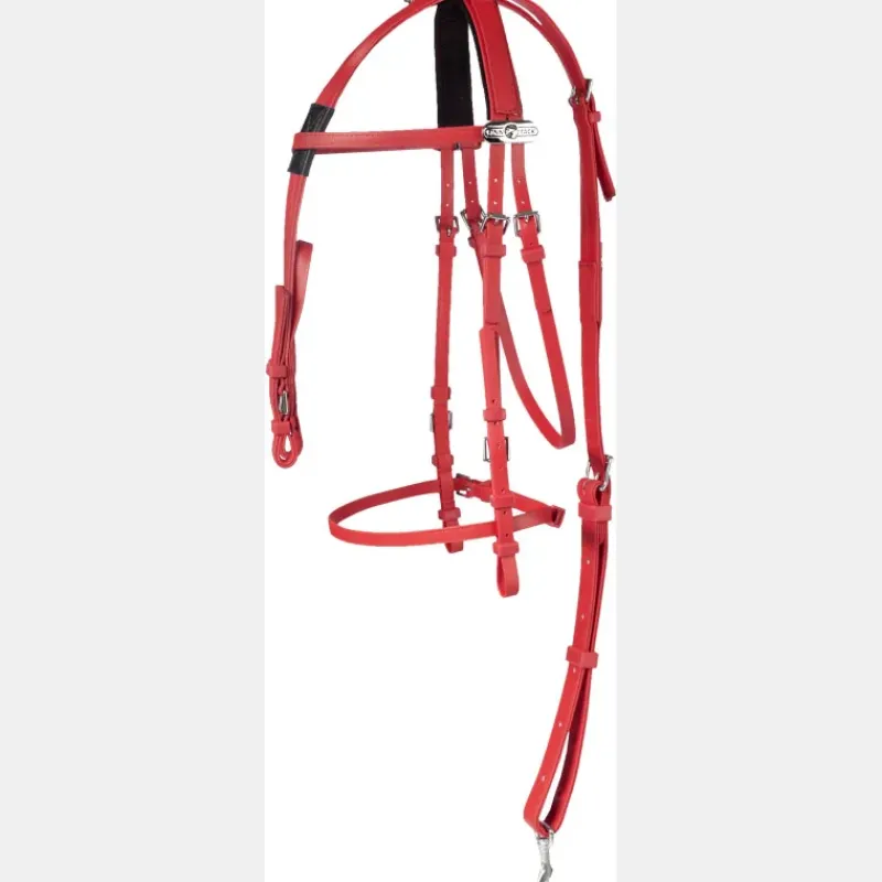 La bride synthétique complète pour trotteur Finntack est conçue pour le cheval de trot à l’entrainement. Elle est à la fois résistante et facile à entretenir, idéale pour une utilisation régulière.