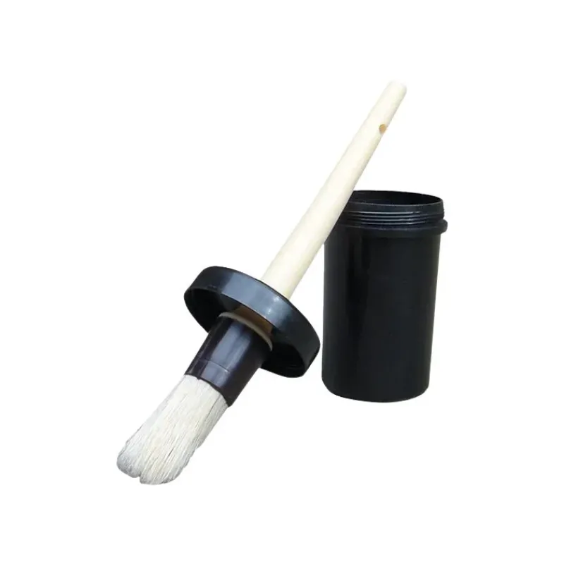 Pinceau à graisse à pied cheval, à onguent pour sabots ou à huile, très pratique, se visse sur un petit pot pour ne pas salir.