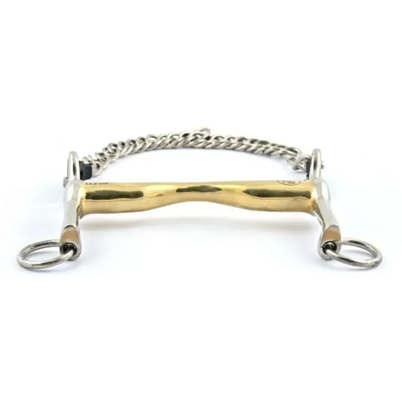 Ce mors de bride possède des petites branches de 45 mm ainsi qu’un canon standard de 18 mm en German Silver (65% cuivre, 23% zinc, 12% nickel). Le German Silver est un alliage décontractant et solide.