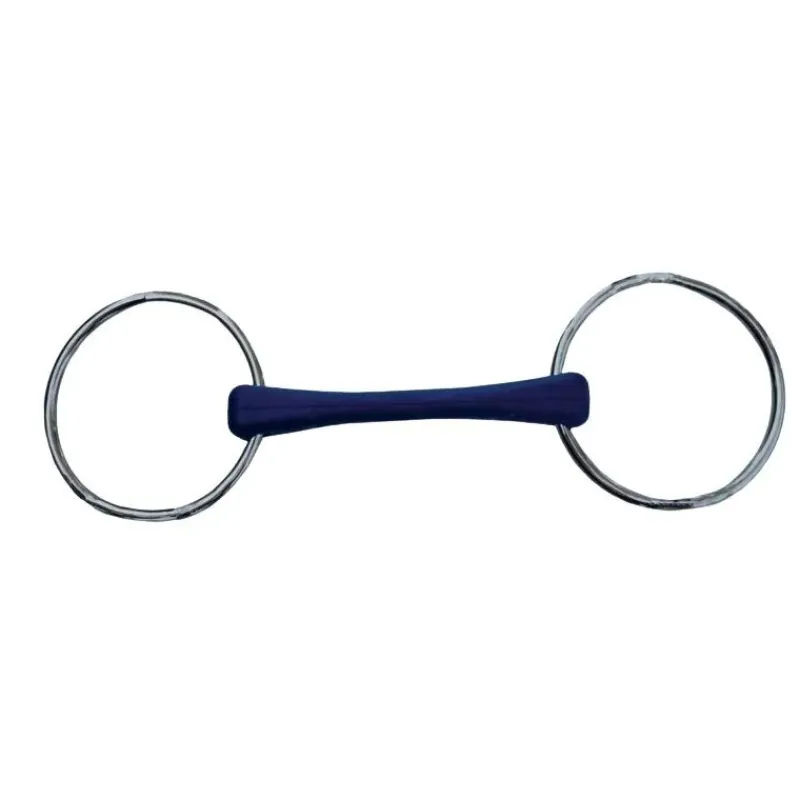 Mors 2 anneaux de 90 mm, canon standard de 19 mm en Caoutchouc naturel muni d’une pièce métallique à l’intérieur. Les mors en caoutchouc sont les plus doux de la gamme Jump’In et apportent beaucoup de confort aux chevaux, même aux plus sensibles.