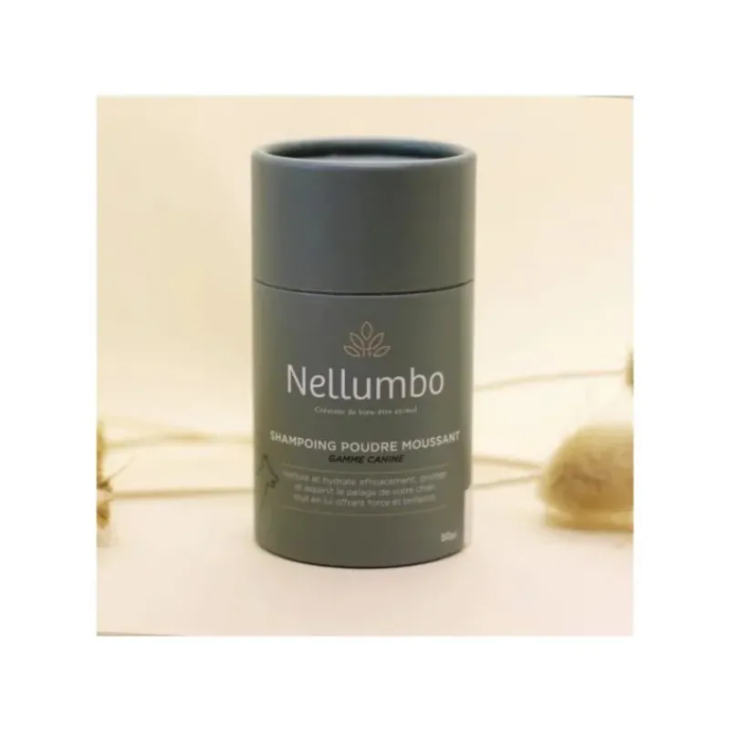Caractéristiques du shampoing poudre moussant pour chien Nellumbo