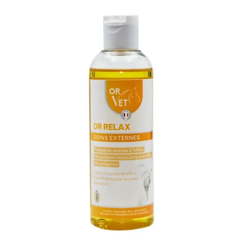 Or Relax de la marque Or Vet est une huile de massage pour préparer les muscles à l’effort et les décontracter après l’effort.