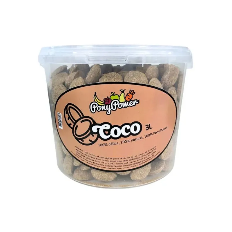 Offrez à votre cheval des friandises saines et délicieuses avec les Friandises Coco de Pony Power. Commandez dès maintenant sur Cheval Energy et faites plaisir à votre compagnon équin tout en prenant soin de sa santé.