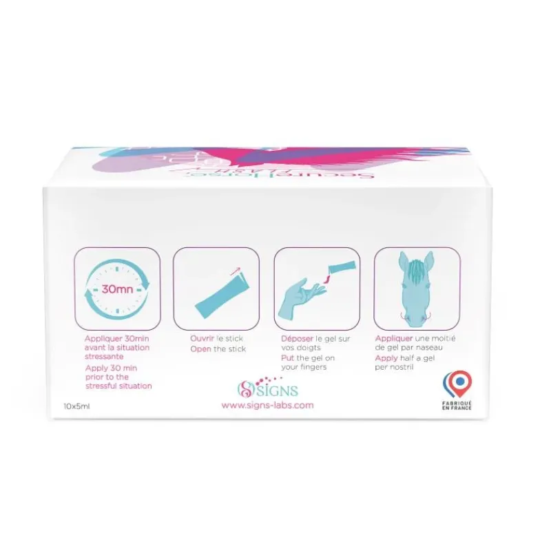 – SecureHorse Flash se présente sous forme de gel. Celui-ci doit être appliqué 20min avant l’événement stressant sur un cheval calme.